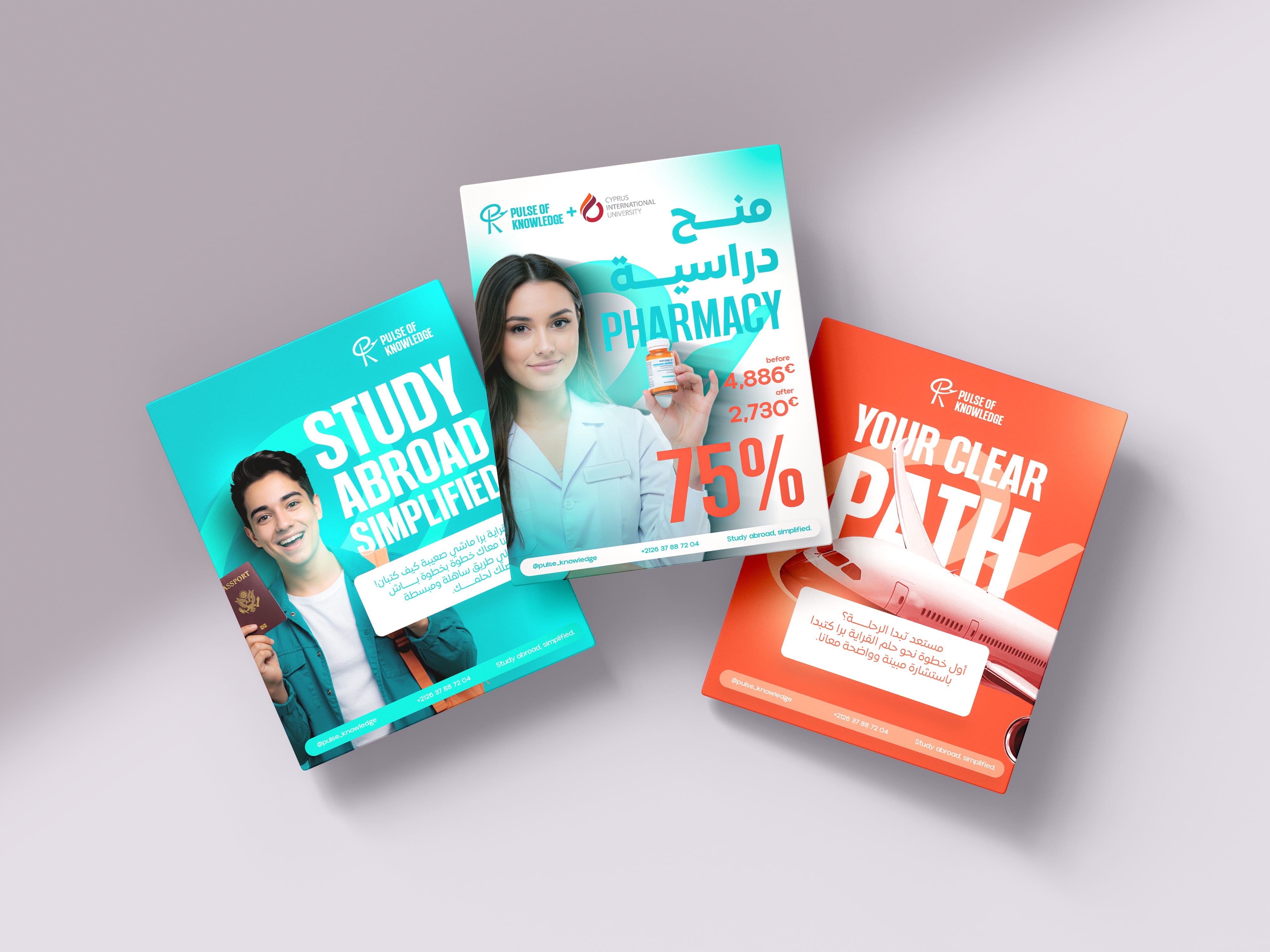 Pulse of Knowledge helps Moroccan students study abroad, but their old branding didn't reflect their mission. They needed a professional and trustworthy identity that would connect with young students and clearly communicate their main promise: "Study abroad, simplified."